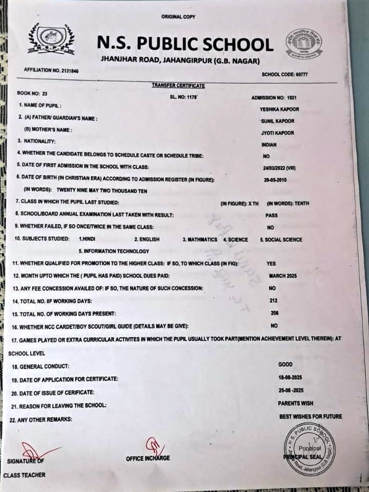 | 3 | 1921 | YESHIKA KAPOOR | SUNIL KAPOOR | Click here |